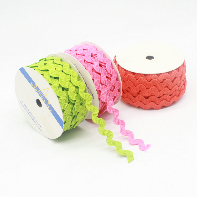Kejing Lace can provide a jumbo ric rac trims, medium rick rack edging, baby rick rack lace, and many other sizes and colors. This zig-zag shape rick rack ribbon by Kejing Lace, a reliable ric rac braid supplier, is perfect for a variety of projects, such as handbag, apron, pillow, dress, and garment accessories decoration.