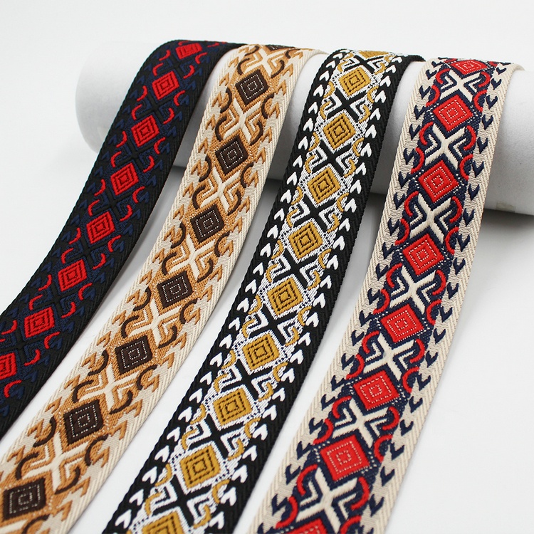 Due to our good reputation, trustable stable quality, competitive prices, unique design, and perfect service, Kejing Lace has become one of the largest jacquard ribbon manufacturers in china. Check our different types of trimming below. Buy our stylish fabric trimming right now, and get the competitive bulk price from us.