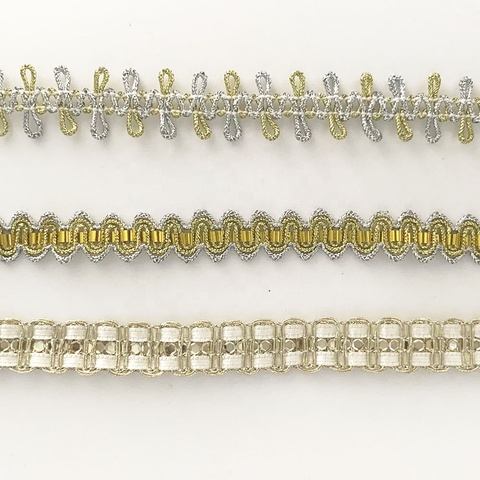 Konfeksiyon aksesuarları için tığ altın örgü süslemeler metalik kaydırma Gimp