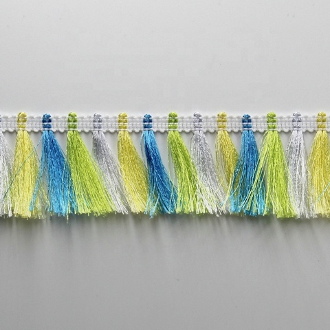 도매 멀티 컬러 폴리 에스터 면 브러시 술 프린지 트림 홈 섬유 커튼 의류 액세서리